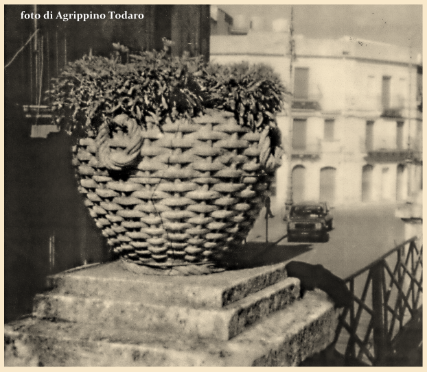 L’ordine effettuato dal Comune di Mineo alla ditta Mst il 17 ottobre comprende quindici “cassette” per i fiori, tre vasi grandi a calice – definiti “a giglio stile Medici” – e quattro vasi del tipo “cesta 900” da collocare su pilastrini.[5] Del primo tipo non abbiamo notizia, mentre gli altri vasi sono sopravvissuti in qualche esemplare fino a oggi, nonostante l’incuria e il rischio concreto di appropriazione indebita.