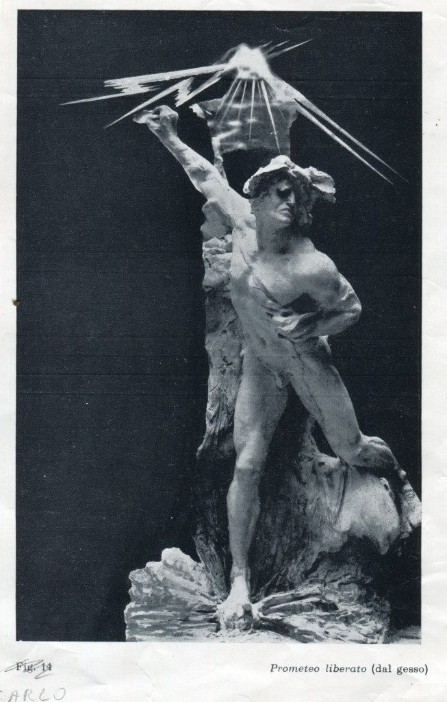 In ogni caso Dante equestre appartiene a pieno titolo all’area del simbolismo idealista, radicato nel verismo (in questo caso la verità della storia), è un ritratto comprensivo del personaggio, delle sue prerogative e vicende di vita; di Dante non dà un ruolo o una condizione, afferra tutto, non il particolare, ma l’universale, l’idea di Dante, ciò che secondo lo scultore gli appartiene: il poeta, l’uomo attivo nelle vicende politiche del tempo, combattente, mediatore politico. E’ per Fontana “Il mio Dante” Con questo spirito Fontana aveva già creato in precedenza due capolavori: il magnifico pluripremiato Farinata (1903, Galleria Nazionale d’Arte Moderna Roma) e poi Prometeo liberato, 1905 (gesso, Sarzana, Archivio e Museo Fontana), statue il cui soggetto letterario e mitologico è completamente rivificato dalla grande personalità dell’artista. (Figg. 3 e 4)