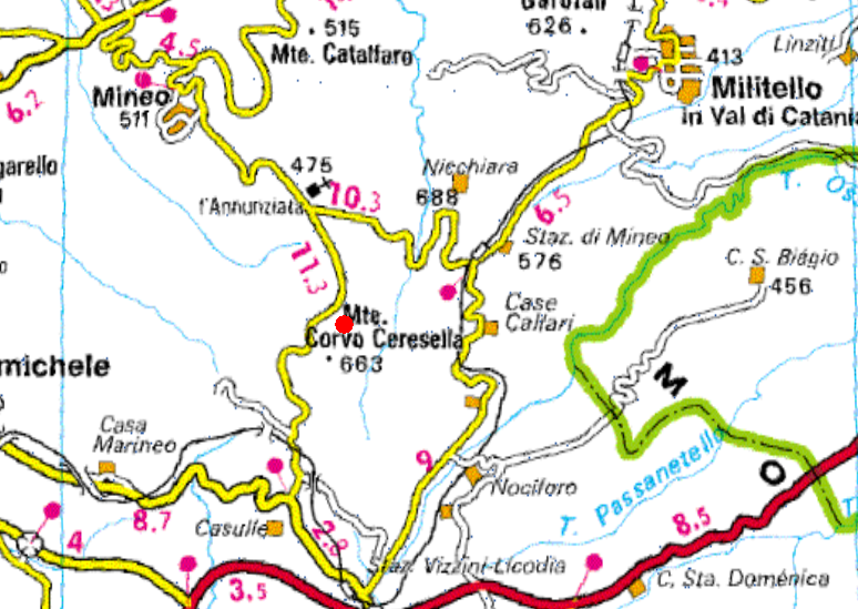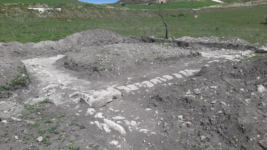 Già all’inizio degli anni Sessanta del Novecento lo studioso Aldo Messina aveva riferito l’esistenza di tracce di epoca romana nello stesso sito. L’area di scavo è perfettamente visibile dalla strada, a pochi metri di distanza e in quanto situata in una zona più bassa verso il fondovalle. Le sue coordinate di riferimento Google Maps sono 37.23249, 14.7198 [link]. Il punto è stato inserito nella mappatura digitale dell’intero territorio di Mineo realizzata dal Centro Studi Ducezio e disponibile per la libera consultazione a questo indirizzo.