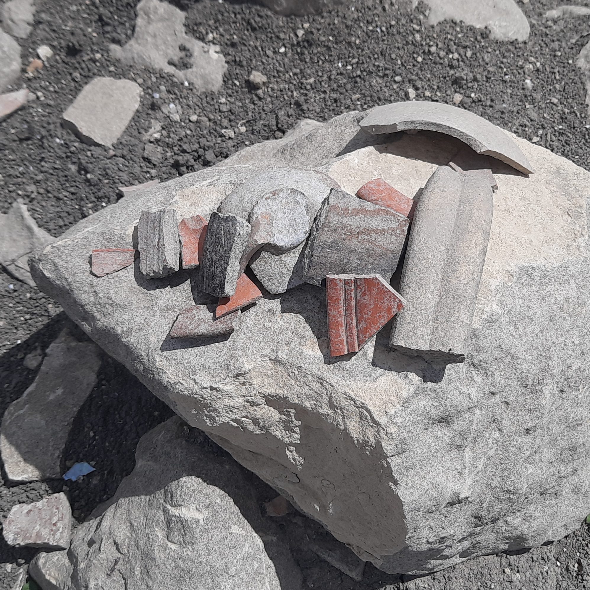 Per quanto riguarda l’aspetto del cantiere di scavo in contrada Calennari, appare anomalo che i reperti siano stati lasciati sul posto, radunati in alcuni mucchietti come si può notare dalle immagini qui riprodotte. Abitualmente negli scavi curati dalla Soprintendenza i materiali rinvenuti vengono invece portati ogni giorno al più vicino deposito regionale, così come infatti ne esiste uno a Mineo, adiacente al Civico Museo Archeologico Tamburino Merlini. È cruciale garantire che il sito della masseria romana in corso di scavo sia protetto e che i lavori siano condotti in modo adeguato e sicuro. La presenza di reperti abbandonati sul posto è preoccupante e potrebbe mettere a rischio l’integrità delle scoperte e la possibilità di una ricerca accurata. Si dovrebbero adottare misure per accelerare le operazioni e trasferire i reperti in depositi sicuri, per la conservazione e lo studio successivo. Non meno preoccupante è l’assenza di una qualsiasi forma di recinzione anche provvisoria a tutela della zona oggetto di scavo, priva tra l’altro di segnaletica riguardante i lavori in corso e la responsabilità della Soprintendenza provinciale per tali lavori.